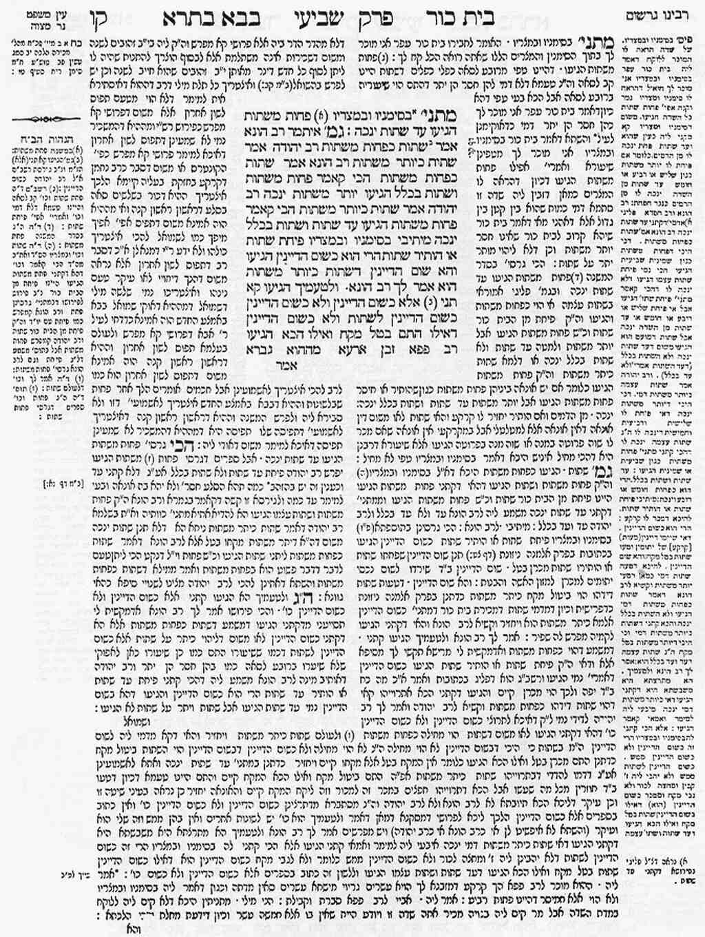 Az üzleti társulás, a közös birtok határának megvonása, az adásvételi szerződések, valamint az örökösödési jog, illetve az okiratok kiállításának törvényei. Ennek a traktátusnak a terjedelme a Babilóniai Talmudban 176 oldal.
