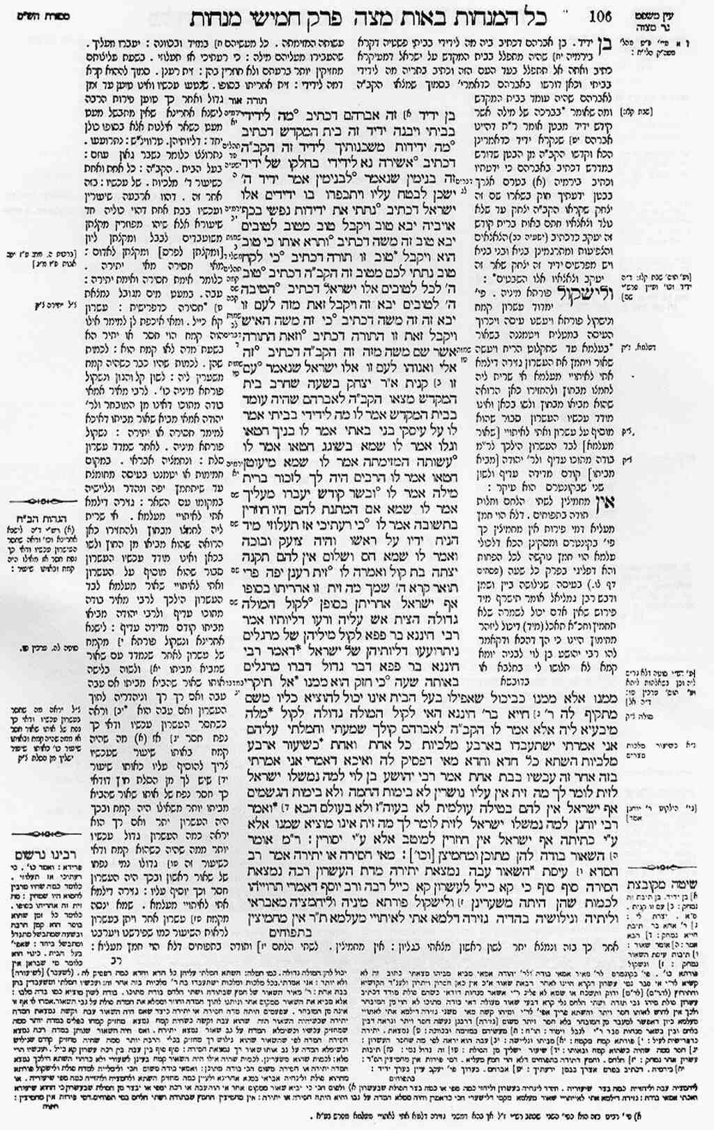 A Misna azzal kezdődik, hogy minden lisztáldozatot és kenyéráldozatot maca (מצה) formában kell az oltárra vinni. Két kivétel van: a todah (תודה), vagyis a hálaáldozat kenyere, valamint a shtei halechem (שתי הלחם), a sávuoti két kenyér, amelyek kifejezetten kovászosak.